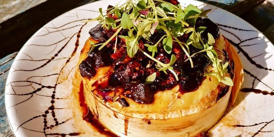- Saupoudrez le camembert de glaçage balsamique et servez avec une ciabatta grillée, le restant des tomates séchées et l’ail noir.